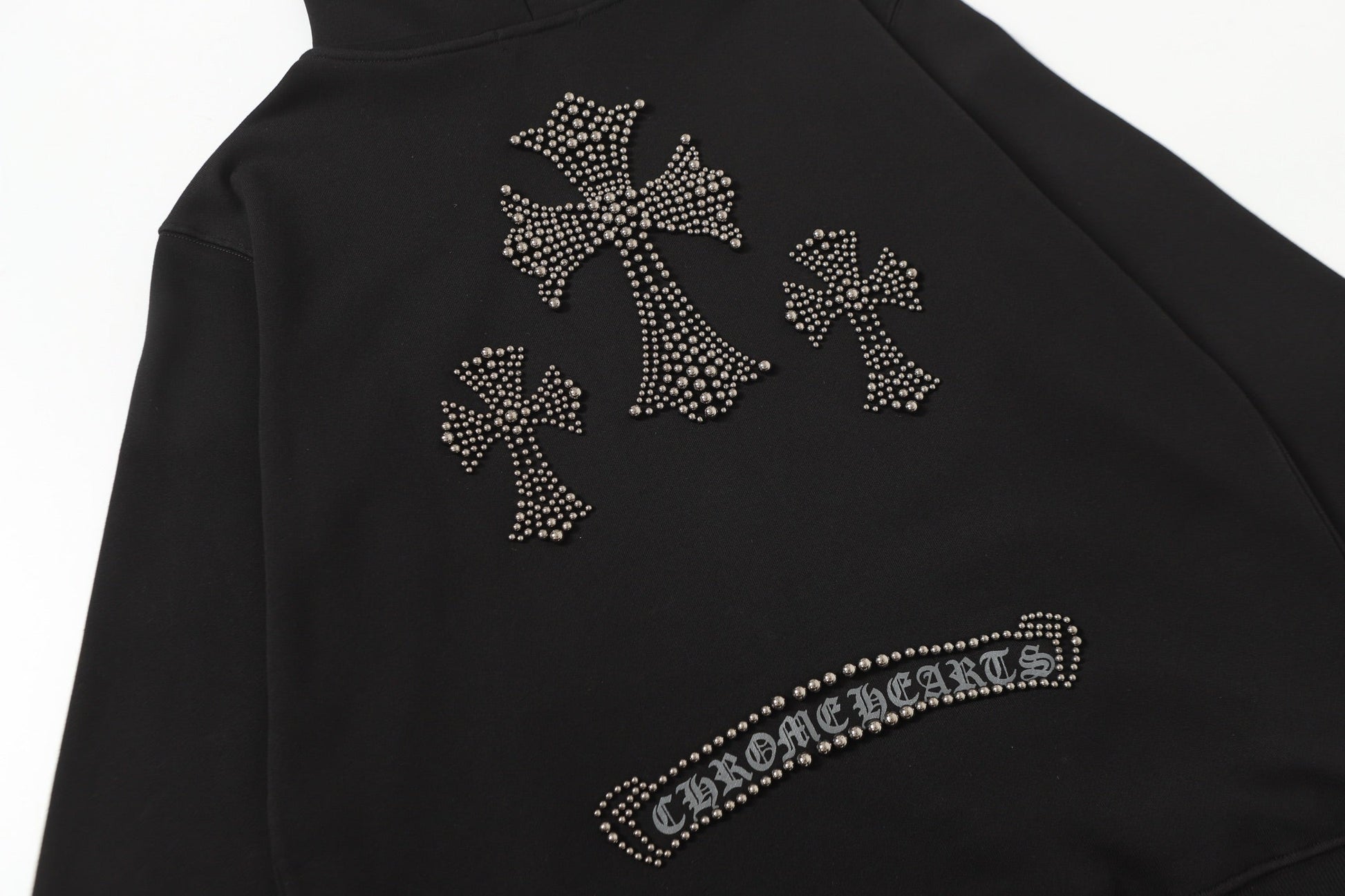 Chrome Hearts Rhinestone Cross Hoodie - Black Gothic Streetwear Sweatshirt 2633